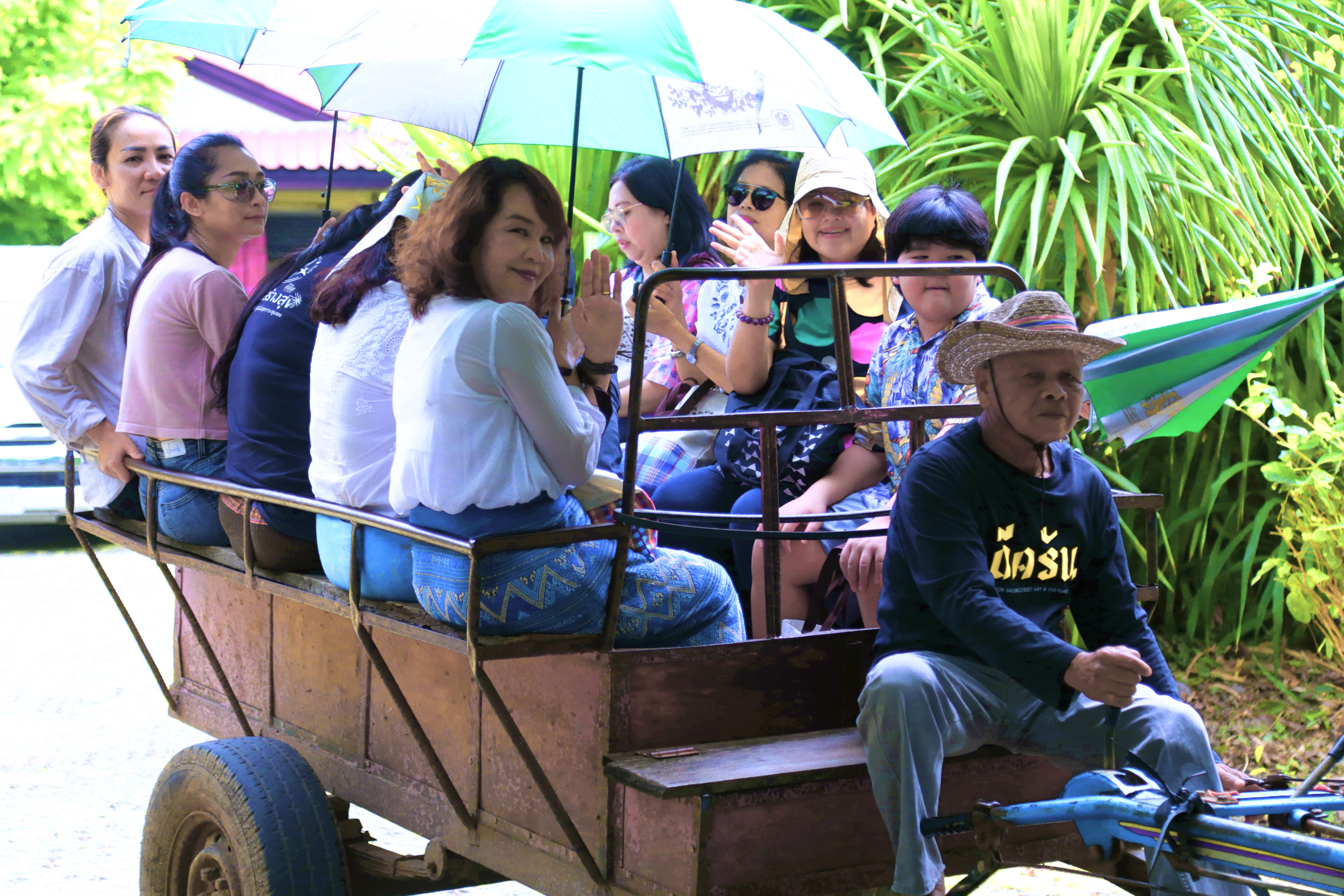 กิจกรรมวันนี้เริ่มด้วยการลงพื้นที่แหล่งเรียนรู้ภูมิพลังวัฒนธรรม เพื่อสุขภาวะผ่านงาน CRAFT & DESIGN ด้วยการนั่งรถอีแลนแตน เพื่อเรียนรู้บ้านทอผ้า (ย้อม, กรีดด้าย, ค้น, สืบ, ทอ) ผู้นำชม คุณกัญญาวีร์ อ่อนสลุง + ครูสุรชัย เสือสูงเนิน (เกริ่นนำเรื่องแนะนำครูภูมิปัญญา) และบ้านของเล่นใบตาล ผู้นำชม นางสาวกรองแก้ว ยอดสลุง + คุณประทีป อ่อนสลุง (ช่วยเหลือช่วงทำกิจกรรม)ปิดท้ายด้วยการนั่งรถชมภาพวาด Street Art