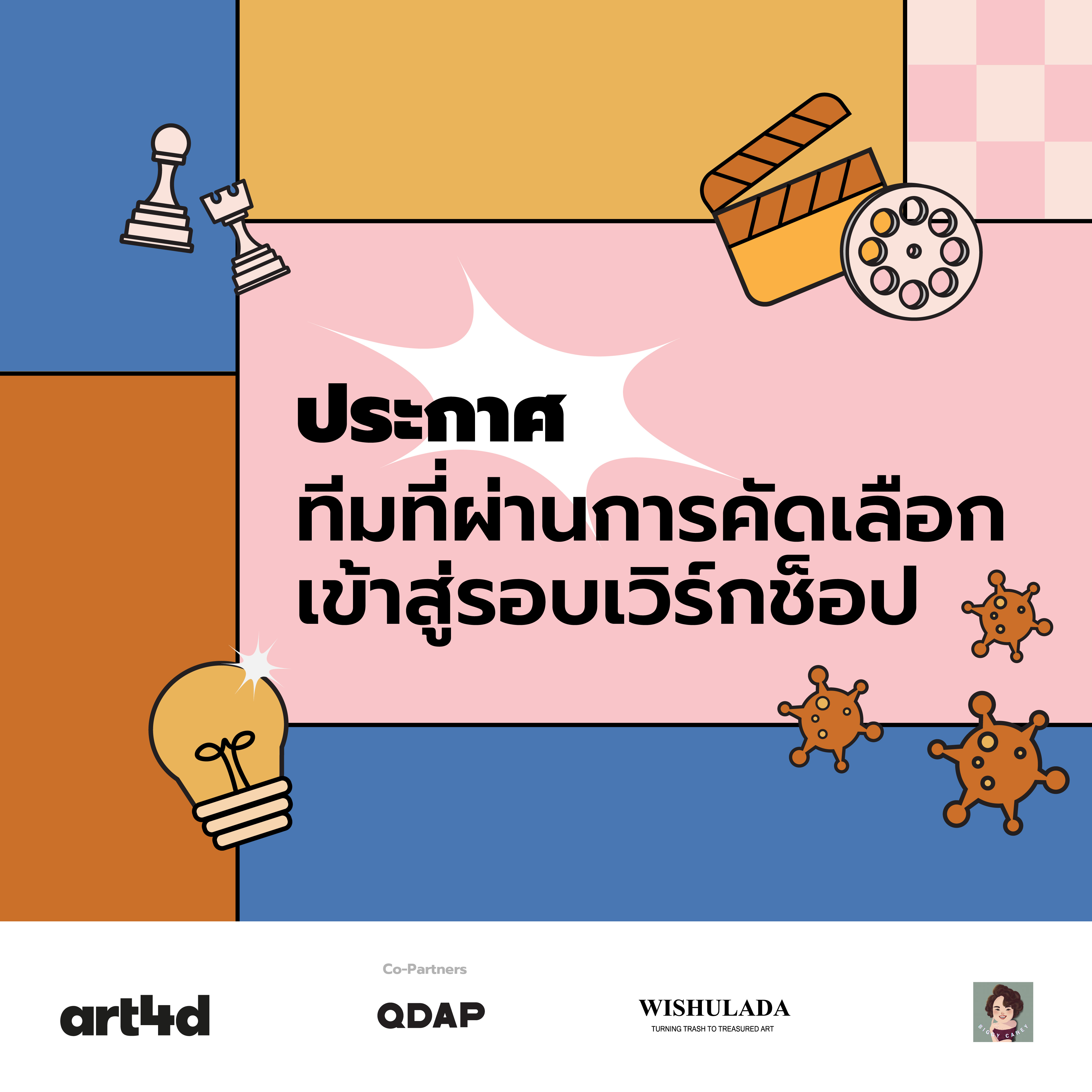 แผนงานสื่อศิลปวัฒนธรรมสร้างเสริมสุขภาพ สำนักงานกองทุนสนับสนุนการสร้างเสริมสุขภาพ (สสส.) ร่วมกับ art4d ขอประกาศผลการคัดเลือกทีมผู้สร้างสรรค์ที่ผ่านเข้าสู่รอบ Workshop สุดยอดผลงานที่จะได้รับทุนสนับสนุนการผลิตผลงานจริง และโอกาสในการร่วมงานกับแบรนด์ชั้นนำ และผู้เชี่ยวชาญระดับประเทศ