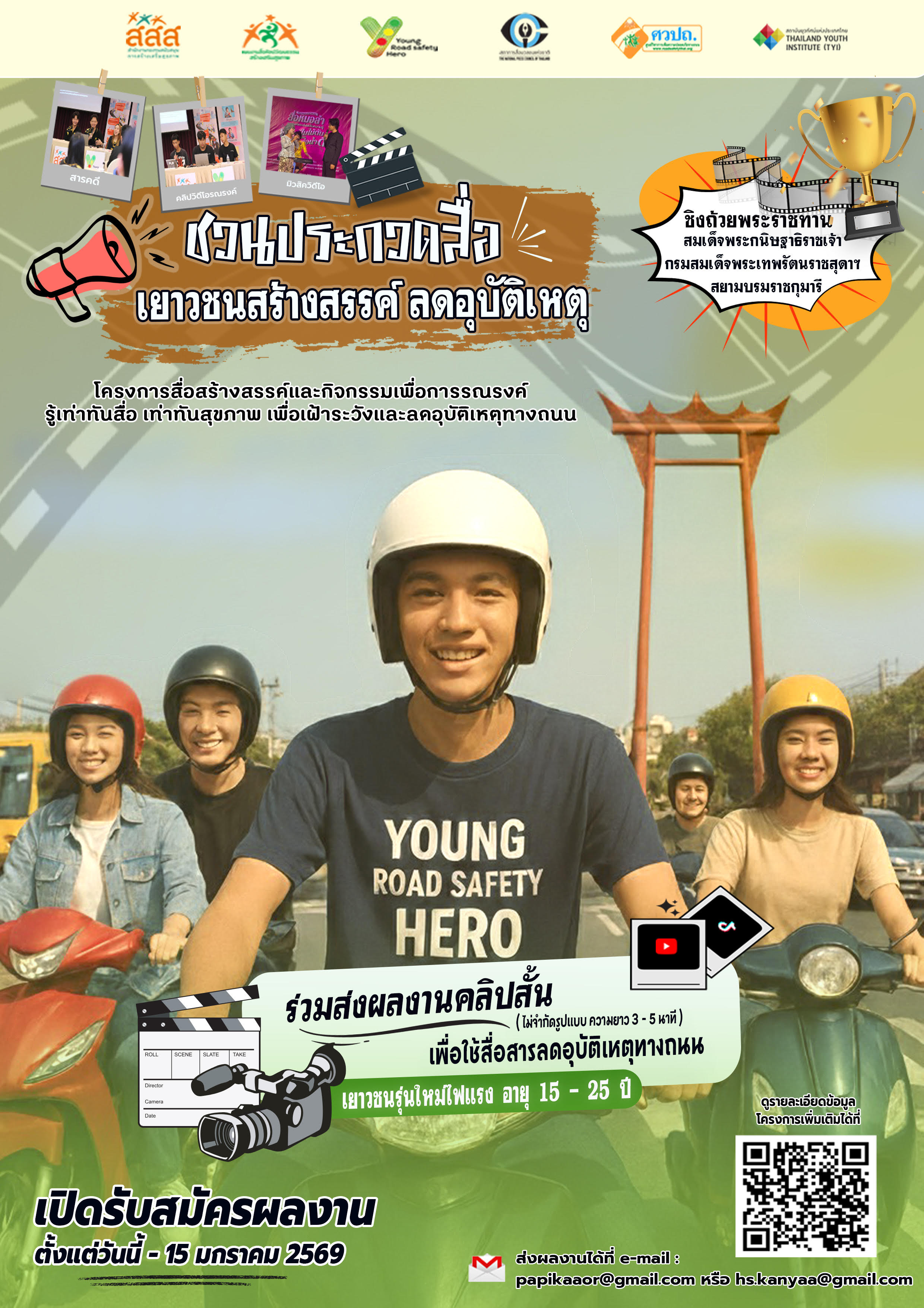 โครงการสื่อสร้างสรรค์และกิจกรรมเพื่อการรณรงค์รู้เท่าทันสื่อ เท่าทันสุขภาพ เพื่อเฝ้าระวังและลดอุบัติเหตุทางถนน ภายใต้ หัวข้อ “Young Road Safety Hero เยาวชนสร้างสรรค์ลดอุบัติเหตุ” โดยแผนงานสื่อสิลปวัฒนธรรมสร้างเสริมสุขภาพ สสส.ร่วมกับเครือข่ายเยาวชนเพื่อความปลอดภัยทางถนน YOURS Network แกนนำเยาวชน YSDN Thailand และสถาบันยุวทัศน์แห่งประเทศไทย สภาสื่อมวลชนแห่งชาติ ศูนย์วิชาการเพื่อความปลอดภัยทางถนน ศวปถ. กองทุนเพื่อความปลอดภัยในการใช้รถใช้ถนน (กปถ.) กรมการขนส่งทางบก เครือข่ายลดอุบัติเหตุ เครือข่ายสถาบันด้านนิเทศศาสตร์ทั่วประเทศ กระทรวง DE และสำนักงานตำรวจแห่งชาติและสำนักงานวัฒนธรรมจังหวัดที่มีความเข้มแข็ง ร่วมออกแบบกิจกรรม ที่ใช้พลังของเยาวชนและพลังของสื่อสร้างสรรค์เป็นเครื่องมือในการป้องกันอุบัติเหตุทางถนนอย่างยั่งยืน ผ่านการพัฒนา ทักษะ ความตระหนักรู้ และการมีส่วนร่วมของพลเมืองเยาวชน ในการสร้างสังคมปลอดภัย ก่อให้เกิดประโยชน์ในการสร้างผู้นำรุ่นใหม่ที่มีจิตสำนึกด้านความปลอดภัยและมีทักษะในการทำงานเพื่อสังคม เกิดเครือข่ายเยาวชนที่ร่วมกันรณรงค์และสร้างความเปลี่ยนแปลงในชุมชน พร้อมทั้งสร้างนวัตกรรมและรูปแบบการรณรงค์ใหม่ๆ ที่เข้าถึงกลุ่มเป้าหมายได้อย่างมีประสิทธิภาพ นอกจากนี้ยังเป็นการปลูกฝังค่านิยมด้านความปลอดภัยทางถนนตั้งแต่วัยเยาว์ และสร้างการมีส่วนร่วมของเยาวชนในการแก้ไขปัญหาสังคม การดำเนินโครงการจะเป็นการสร้างนวัตกรรมทางสังคมที่ให้เด็กและเยาวชนเป็นผู้นำการเปลี่ยนแปลง เกิดการเรียนรู้ผ่านการลงมือทำจริง และสร้างความภาคภูมิใจในการมีส่วนร่วมแก้ไขปัญหาของสังคม นอกจากนี้ยังเป็นการพัฒนาศักยภาพของเยาวชนให้เป็นพลเมืองที่มีคุณภาพ มีจิตสาธารณะ และมีทักษะในการทำงานเพื่อสังคม ซึ่งจะนำไปสู่การสร้างสังคมที่ปลอดภัยจากอุบัติเหตุอย่างยั่งยืนในอนาคต