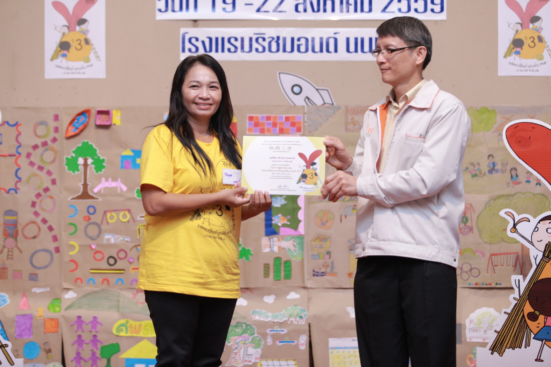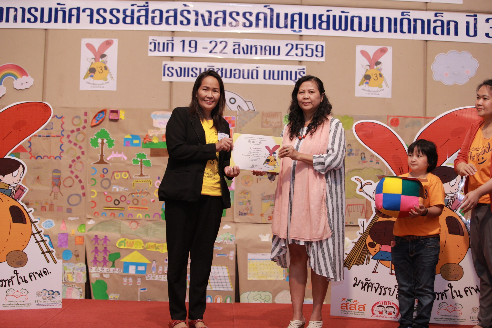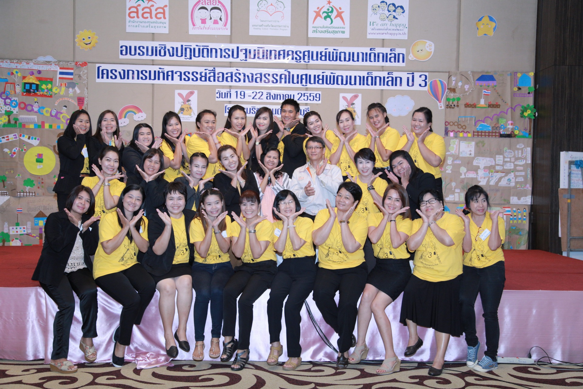 จากกระบวนการ การเรียนรู้และอบรมเพื่อพัฒนาครูเด็กเล็ก ในโครงการมหัศจรรย์สื่อสร้างสรรค์ในศูนย์พัฒนาเด็กเล็ก ปี 3 โดยในการอบรมเชิงปฏิบัติการปฐมนิเทศครูศูนย์พัฒนาเด็กเล็ก นี้ได้จบลงแล้วอย่างเป็นทางการ เมื่อวันที่ 22 สิงหาคม ที่ผ่านมา แต่ก่อนปิดการอบรม เรามีพิธีประกาศความสำเร็จกันด้วยการถ่ายภาพ และมอบเกียรติบัตรให้กับคุณครูที่มาร่วมงาน คุณครูท่านไหน มาจากที่ใดกันบ้าง เรามีทั้ง 172 ท่านมาให้ชมกัน