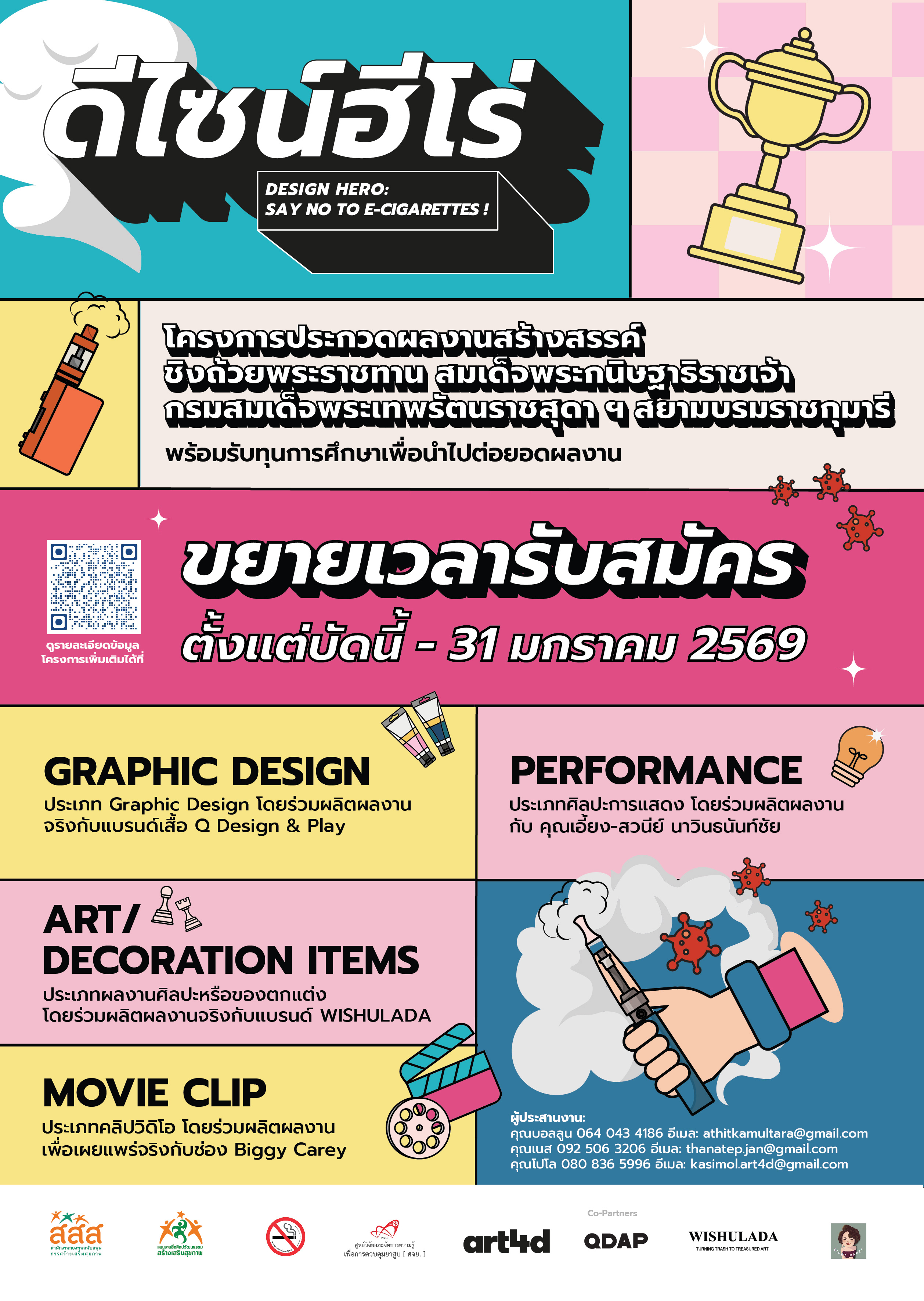 ประกาศเปิดขยายเวลารับสมัครรอบผลงานทั่วไป!โครงการประกวดผลงานสร้างสรรค์ Design Hero 2025: SAY NO TO E-CIGARETTES!