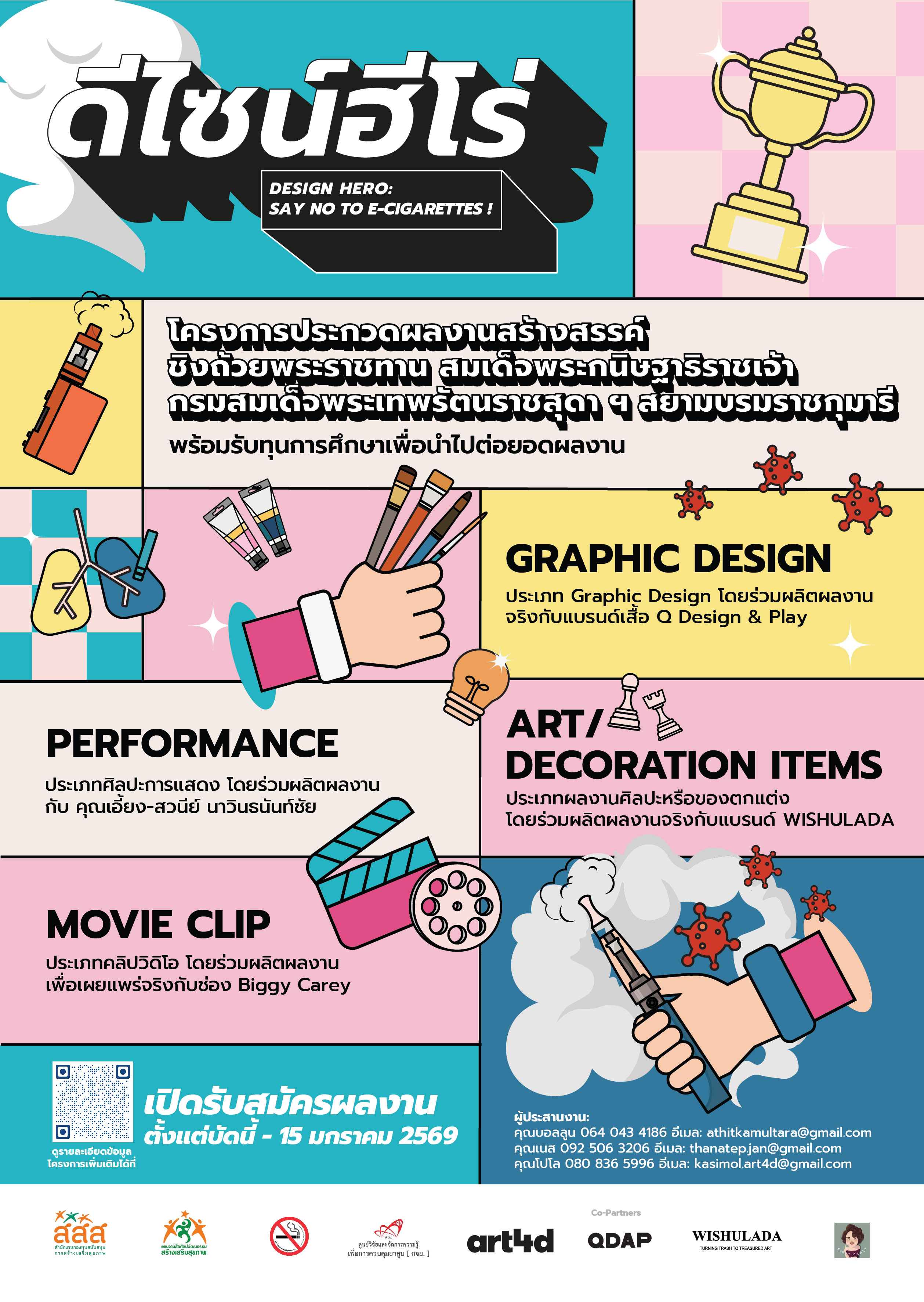 ประกาศเปิดรับสมัครรอบผลงานทั่วไปแล้ว! โครงการประกวดผลงานสร้างสรรค์ Design Hero 2025: SAY NO TO E-CIGARETTES!